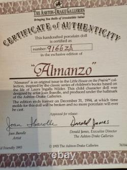 This product is a set of all 8 vintage Little House on the Prairie Ashton Drake dolls, featuring characters from the series such as Pa, Ma, Mary, Laura, Carrie, Grace, Almanzo, and Nellie. Each doll is made of porcelain and cloth, with a light complexion and removable clothes. The set includes accessories, original boxes, and were handmade by artist Dianna Effner for The Ashton-Drake Galleries in the 1990s. This collector's edition set is perfect for fans of the Little House on the Prairie series and collectors of vintage dolls.