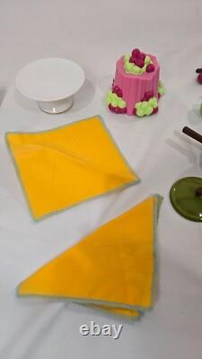 American Girl Julie's Fondue Set - Retired 1970s Accessory (Like New Condition). Take your doll back to the'70s with this. American Girl Fondue Set, part of Julie Albright's collection. This adorable and detailed set is perfect for doll-sized dinner parties and makes a great addition to any collector's display or play scene. Green fondue pot with lid.