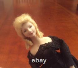 Dollhouse Miniatures Beautiful Vintage Porcelain Blonde Lady in Black Gown Artisan Made. Private Collection Never Been Used or Displayed, Just Collected.
