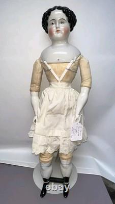 25 magnifiques poupées en porcelaine ABG Alt Beck et Gottchaulk des années 1860-80, avec de belles couleurs. Yeux bleus avec un contour rouge au-dessus des yeux. Le corps est à la fois ancien et nouveau - membres en porcelaine anciens sur un corps en tissu plus récent, sa jambe gauche est fissurée et collée. Tête 6,5" largeur 5,75" profondeur 4. Voir les photos pour la meilleure description.