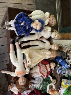 Ce produit est un lot de 50 poupées en porcelaine antiques des années 1980, présentant des cheveux blonds bouclés et un teint clair. Chaque poupée du lot est une poupée fille de l'ethnie caucasienne, faite à la main avec des caractéristiques originales. Ces jouets de collection viennent dans leur emballage d'origine, ce qui en fait un ajout précieux à toute collection de poupées ou un excellent cadeau pour les passionnés de poupées.