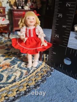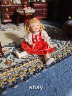 Cette poupée de maison de poupée artisanale vintage est un objet de collection unique en son genre. Fabriquée dans les années 1980, cette poupée en porcelaine de 3 pouces possède des cheveux blonds et un teint clair. La poupée faite à la main est accompagnée de vêtements et fait partie d'un ensemble à l'échelle 1:12, ce qui en fait un ajout parfait à toute maison de poupée ou collection de miniatures. Cette poupée artisanale dégage un sentiment de nostalgie et de charme, convenant aux collectionneurs adultes âgés de 16 ans et plus qui apprécient les pièces artisanales.