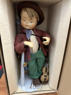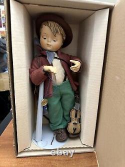 Poupée en porcelaine garçon violoniste vintage Goebel Hummel 13,5 avec chapeau et violon